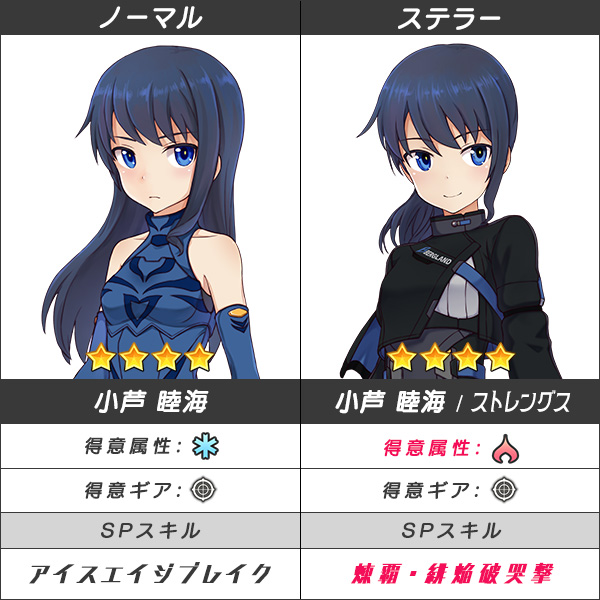 小芦 睦海【ストレングス】は得意属性が冷撃から焼夷に変更され、ユニゾン対応SPスキルも装備。