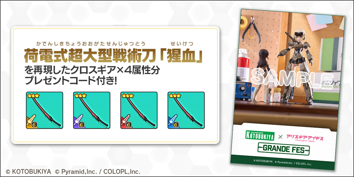 「アリス・ギア・アイギス」関連商品、または「コトブキヤ」製商品を、1点以上お買い上げいただいたお客様にプレゼントします。